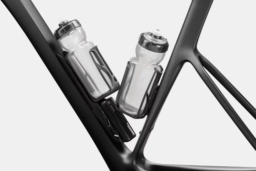 Dołączone do SuperSix EVO koszyki ReGrip Aero i bidony Gripper Aero robią coś więcej, niż tylko przechowywanie wody. Dzięki nim rower jest szybszy. Zaprojektowane z myślą o EVO, tworzą bardziej opływowy profil, poprawiając aerodynamikę roweru. Koszyki mieszczą też standardowe okrągłe bidony z bufetu.