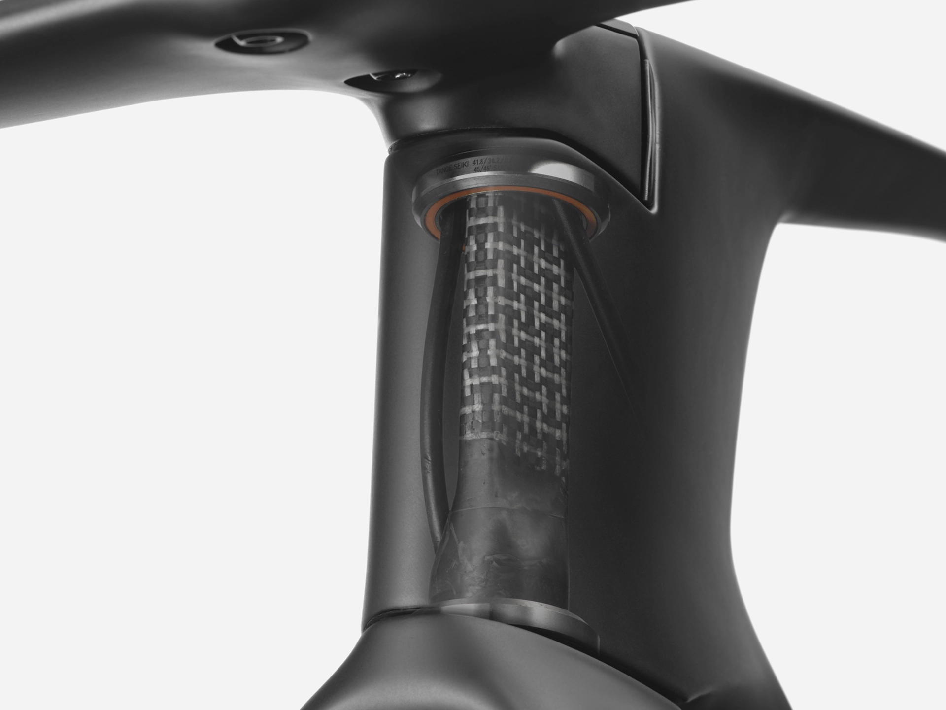 Specjalnie opracowana główka ramy umożliwia bardzo czyste wewnętrzne prowadzenie przewodów, a jednocześnie utrzymuje główkę ramy niezwykle wąską, co przynosi korzyści aerodynamiczne i poprawia efektywność.