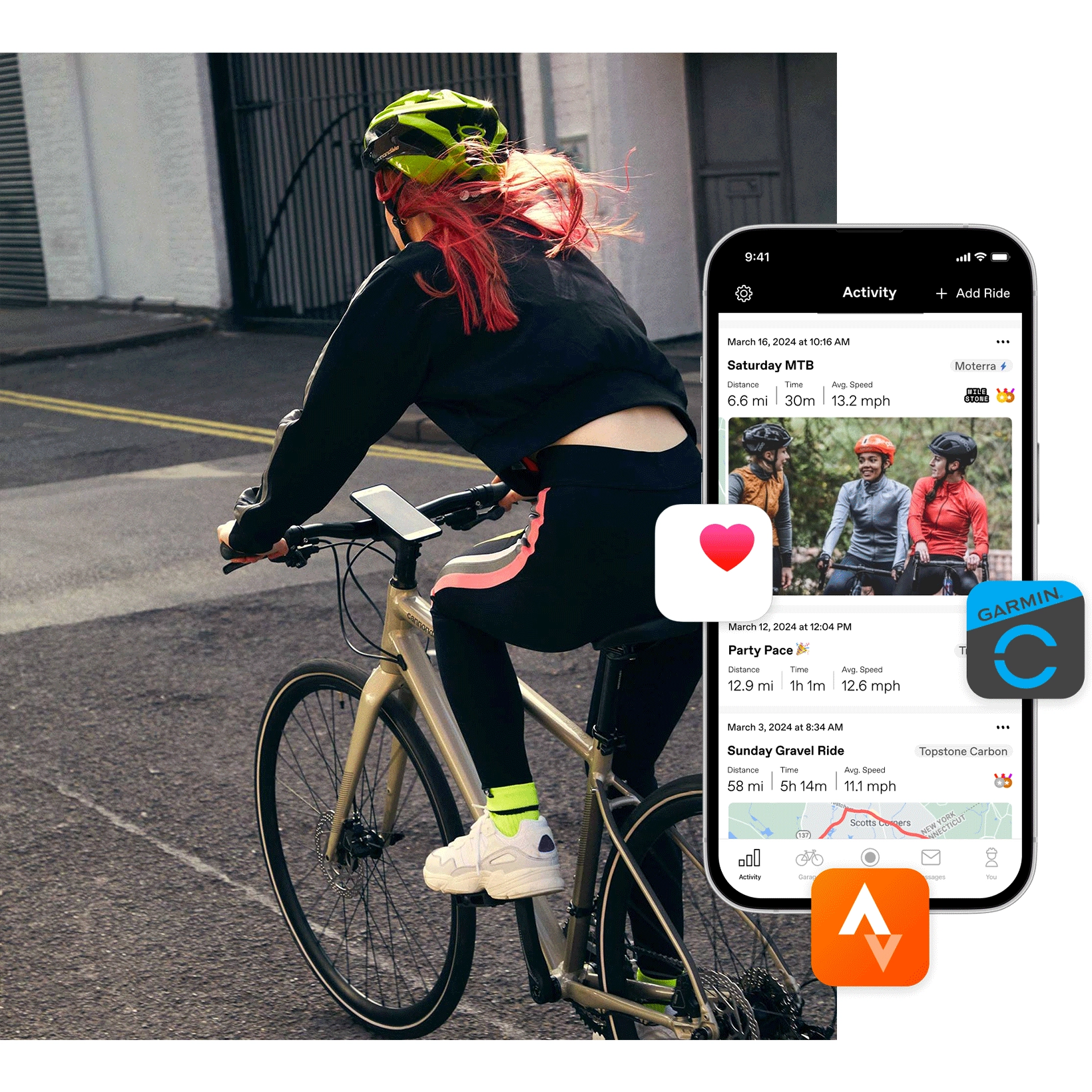 Masz akcesoria? Monitor tętna, czujnik kadencji i inne urządzenia możesz połączyć z aplikacją Cannondale, aby śledzić wszystkie dane w jednym miejscu. Obsługiwany jest także radar Garmin Varia Radar, który – jeśli jest zamontowany – może ostrzegać dźwiękowo lub wizualnie o pojazdach nadjeżdżających z tyłu.