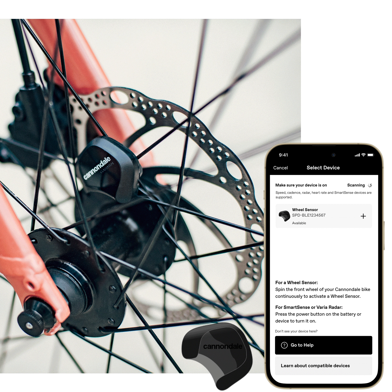 Użyj czujnika Cannondale Wheel Sensor (montowanego w wielu rowerach Cannondale lub dostępnego jako akcesorium), aby wycisnąć jeszcze więcej z każdej jazdy – po sparowaniu z aplikacją precyzyjnie mierzy prędkość, dystans i inne dane. Automatycznie zapisuje każdy przejechany kilometr i może przechowywać do 900 godzin aktywności między synchronizacjami z aplikacją.